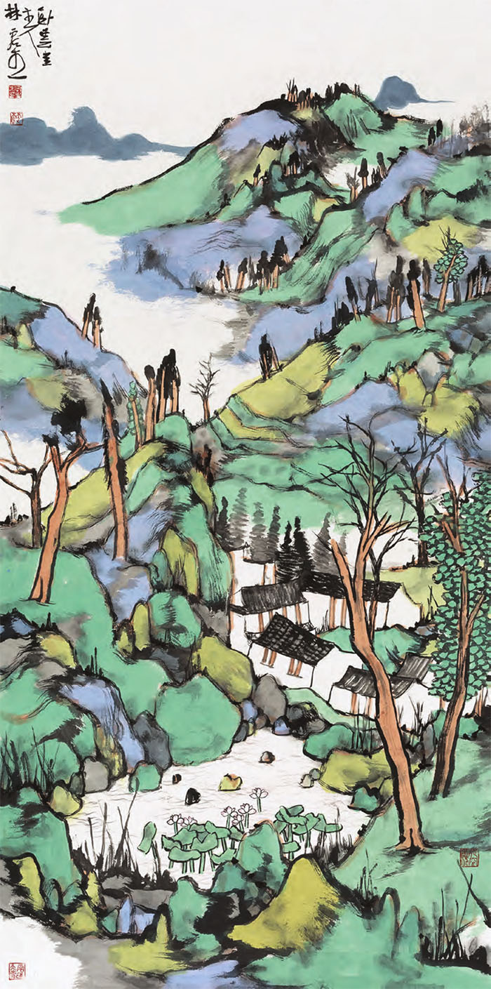 林容生以中国传统绘画为根基,在传统青绿山水和文人写意的基础上,融入了西方现代派的构成和装饰性,创建出独具个性与时代性的绘画语言。