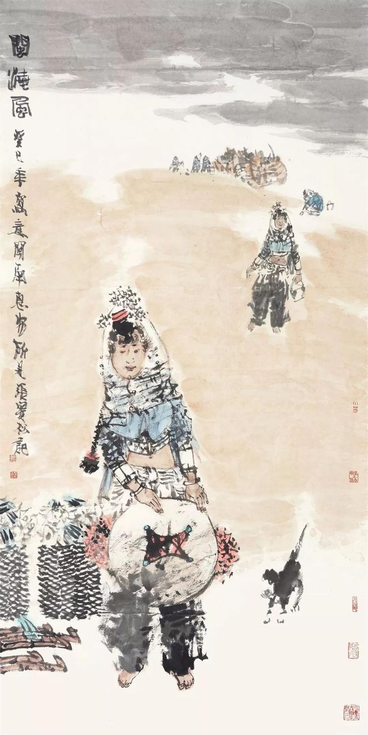 张宝松的人物画以“轻”见长,“轻”中寓“重”,张宝松的“惠安女”系列,轻松、明媚,情景点到为止,画面不求满、求全,善于运用淡墨浅绛,营造出“犹恐相逢在梦中”的意境。